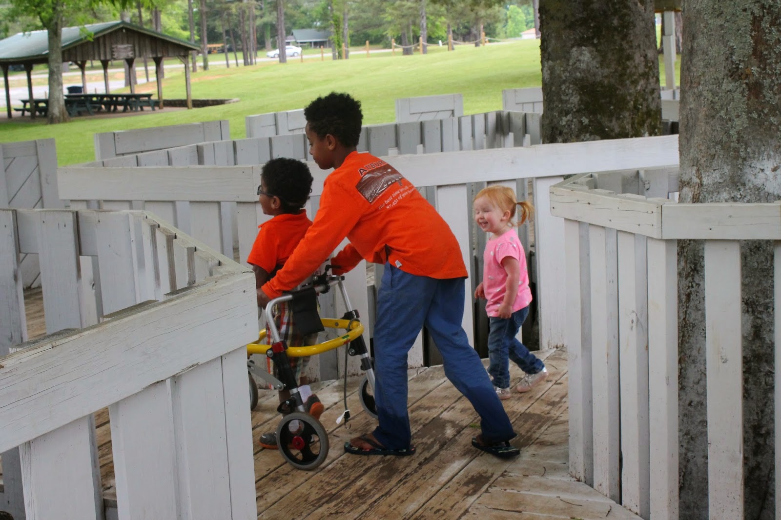 Let me stop for a moment right here. Going to the park with Israel is always a challenge. He can't play like a typical kid and sometimes he gets frustrated and I worry about him being left out. These kids fought over who could walk him around the train playground! He giggled so hard and these kids were SO SWEET to him. It makes me cry looking back at how happy he was right here. He's not always happy at the park and these pictures of him grinning just burst my heart.