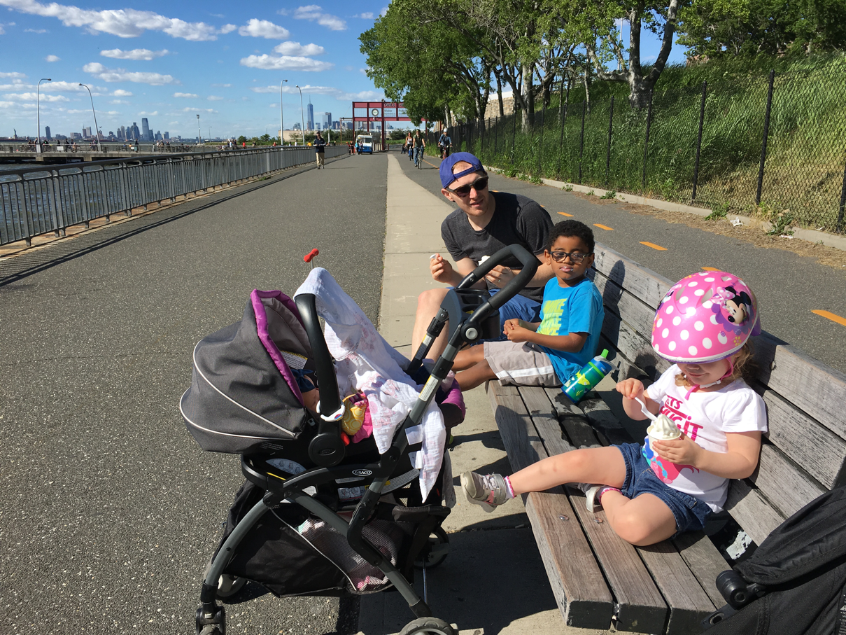 When I got back we loaded up the kiddos and headed to the Shore Promenade in Bay Ridge. This part of our neighborhood is so peaceful to me. I love looking out at the water (daydreaming about being on one of those cruise ships!) and watching our kids play.